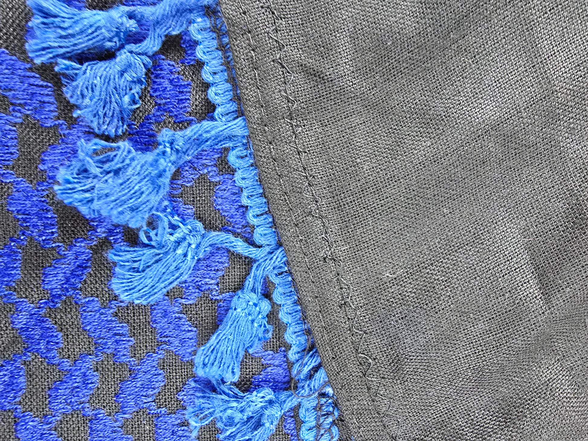 • Please note that this shemagh blue and black is woven on an antique loom, and loose threads may occur. Trim any loose threads carefully. Trims may vary.