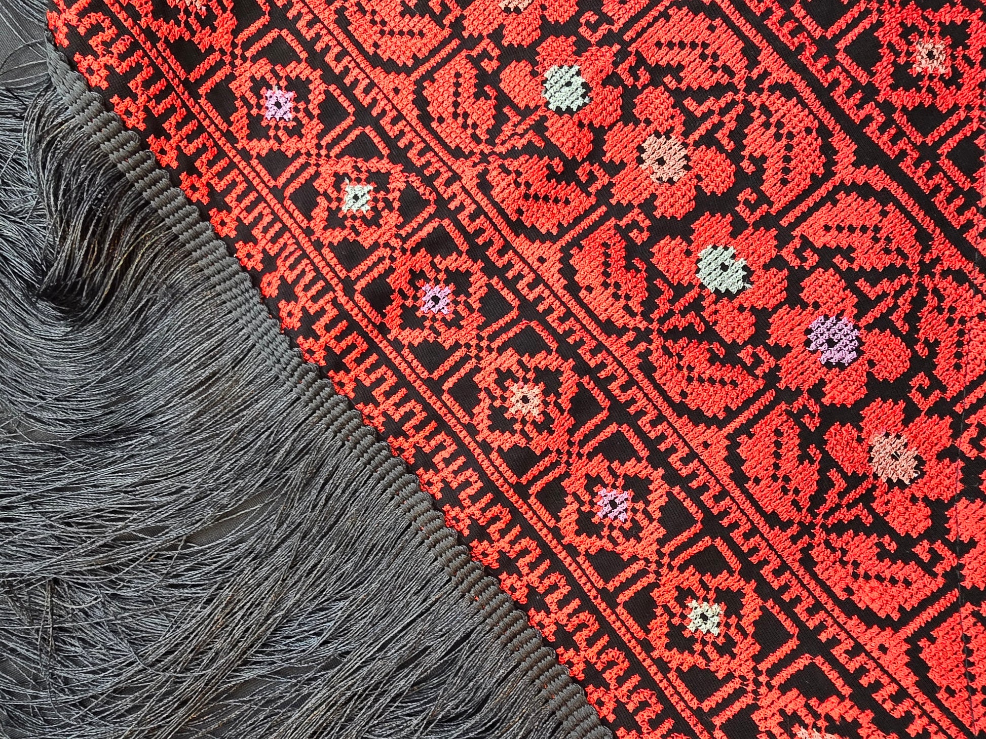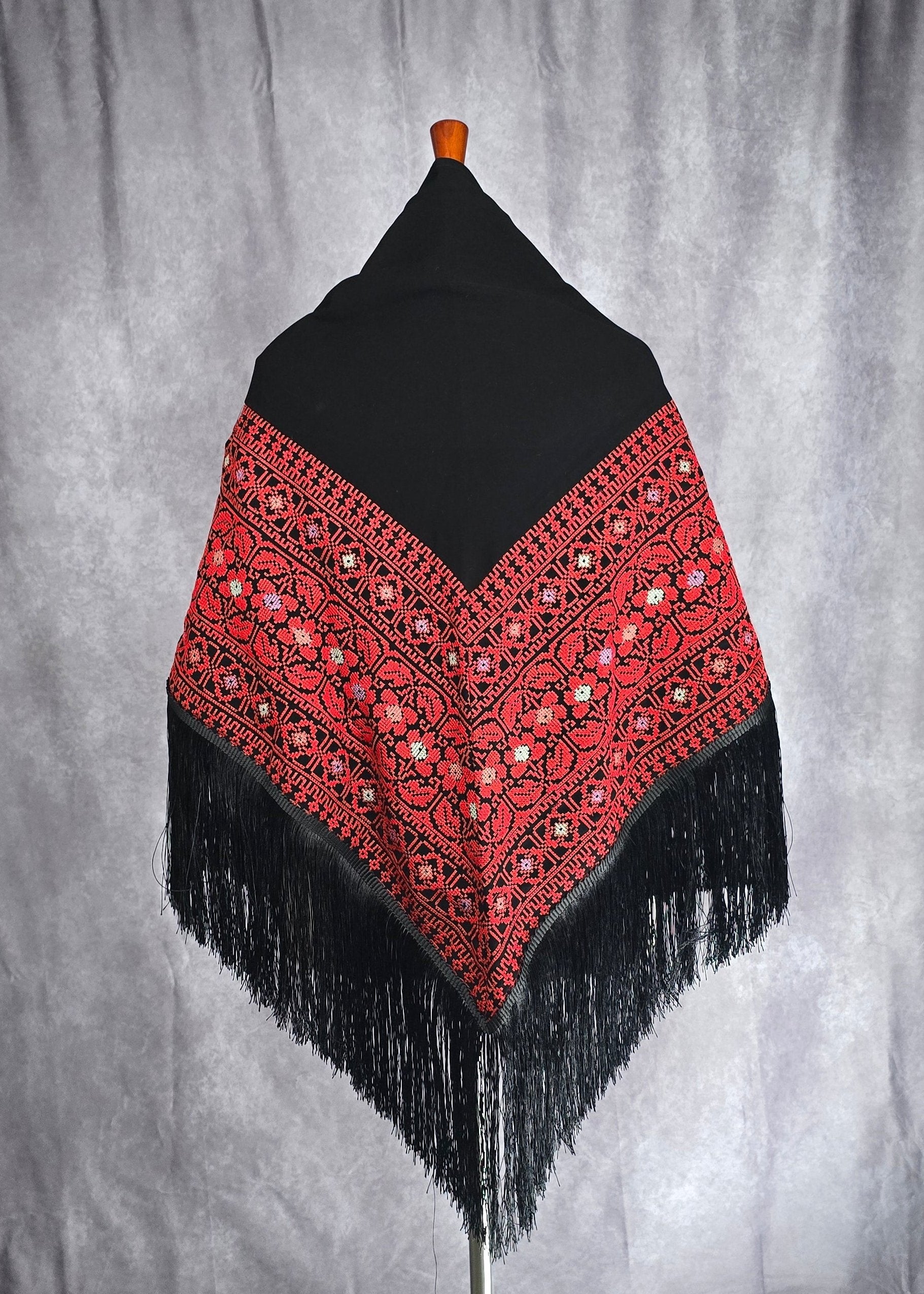 Palestinian Embroidered (Tatreez) Shawl - Machine Embroidered